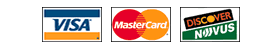 We accept Visa, MasterCard, Discover, Novus, Cash or Check.